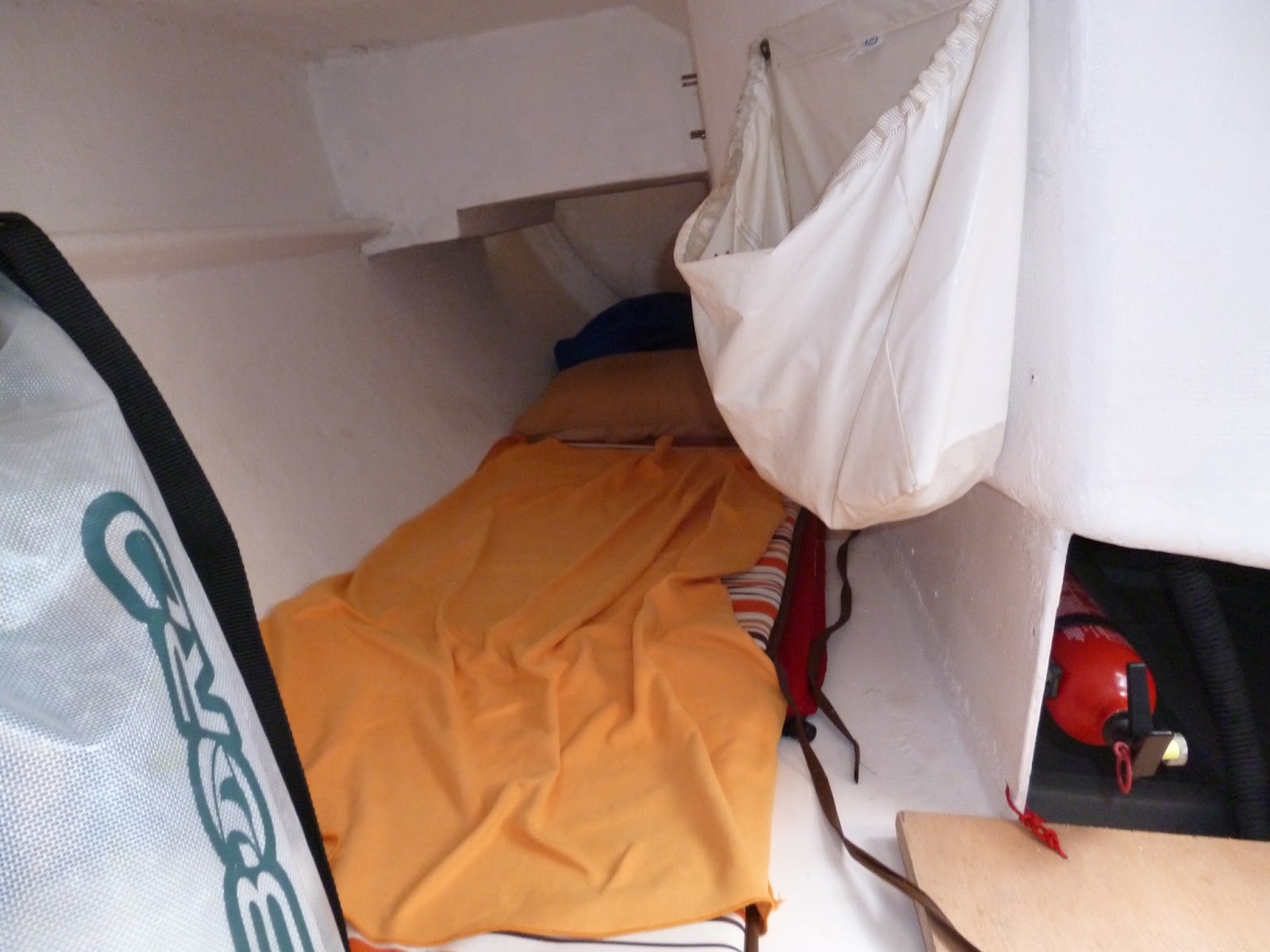 El Peter Punk és un vaixell de regates…de interiors austers…fet amb solidesa i a consciència. Potser no és molt còmode però té el suficient per navegar i viure. La cuina és un fogonet per escalfar aigua pels tes i els liofilitzats…la nevera la fibra en contacte amb l’aigua per tenir el menjar fresc…el vàter una galleda lligada amb un cabet…el llit una màrfega d’amunt de la fibra…i té una terrassa a la popa! amb vistes al mar, on les nits estrellades s’hi pot somniar.