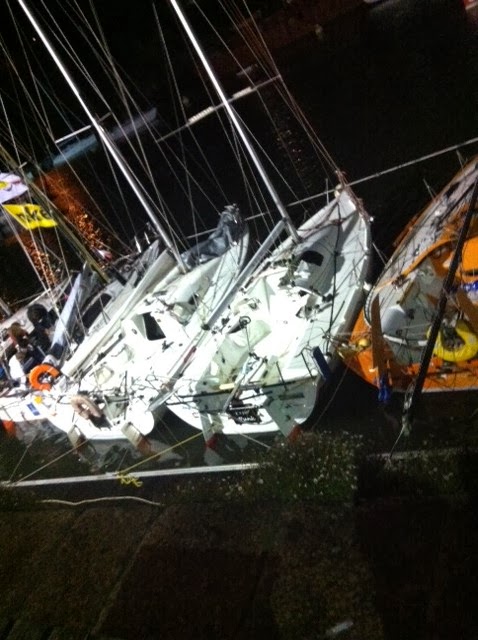 A la tarda ens han remolcat fins a l’altra banda de riu, on està realment el village, quina emoció arribar allà! Tancaven l’enclusa del riu a les 6, però a les 5 ja erem a port! Als pantalans 84 minis amb els respectius skippers, equips, families etc. tothom, especialment els companys Catalans I espanyols ens pregunten si necessitem alguna cosa etc. Probablement perquè coneixem la duressa de la prova i les condicions extremes que viurem en els propers dies el companyerisme es converteix en quelcom vital, en som ben conscients…